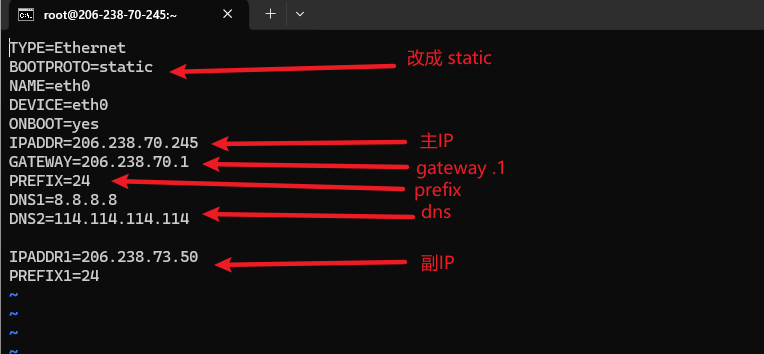 vi /etc/sysconfig/network-scripts/ifcfg-eth0