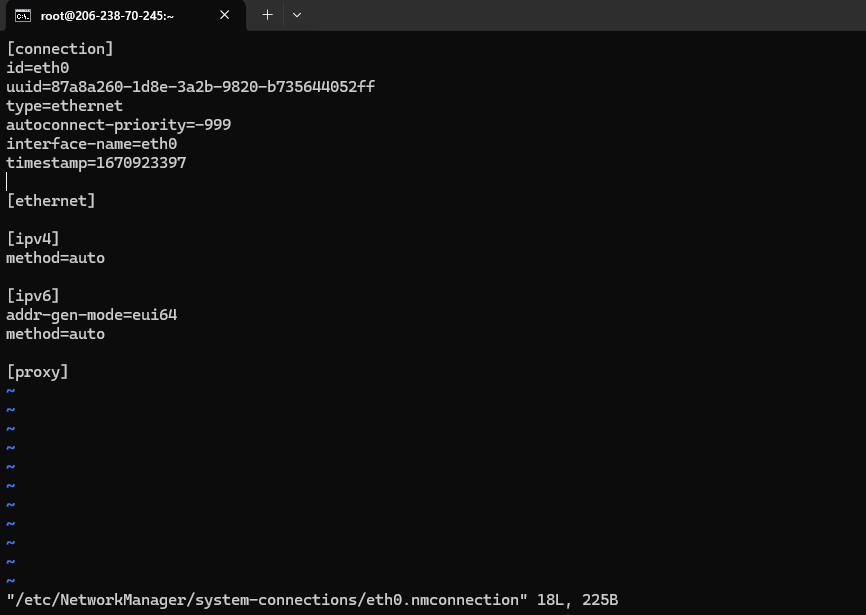 vi /etc/NetworkManager/system-connections/eth0.nmconnection