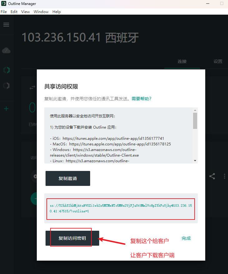 使用方法 : 让客户在Outline客户端 添加密钥 (先让客户下载Outline客户端)