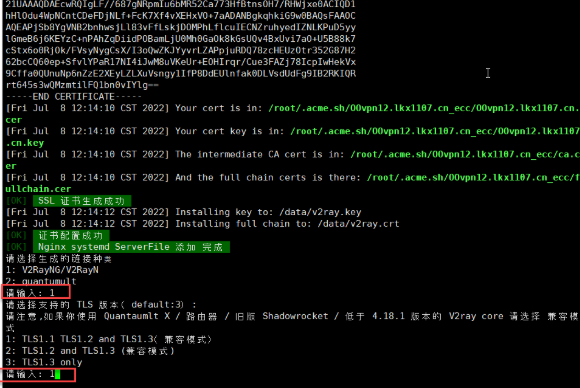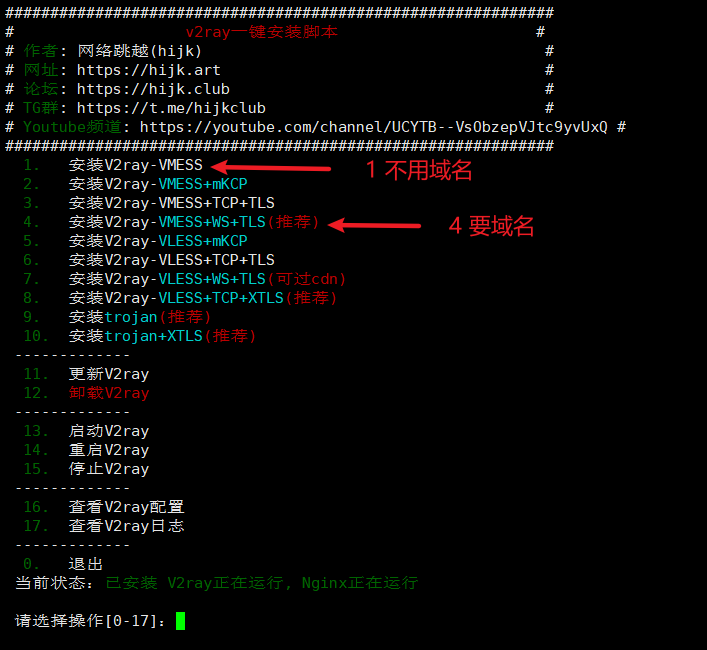 注意下 !!! 选1 不用域名 ////// 选4 要域名 , y , 输入域名